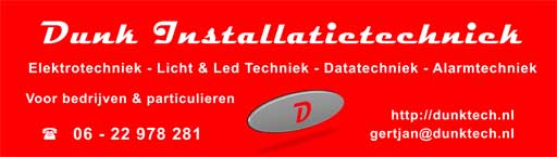 Dunk Installatietechniek is een bedrijf dat zich bezig houdt met Elektrotechniek - Licht & Led Techniek - Datatechniek Alarmtechniek, voor bedrijven maar ook particulieren.